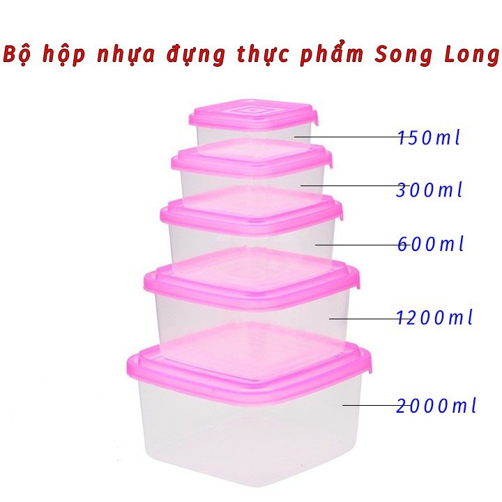 -Bộ hộp đựng thực phẩm cao cấp Song Long bao gồm 5 hộp với kích thước khác nhau sẽ giúp bạn bảo quản thức ăn luôn được tươi mới, sạch an toàn và đảm bảo chất lượng tốt nhất.