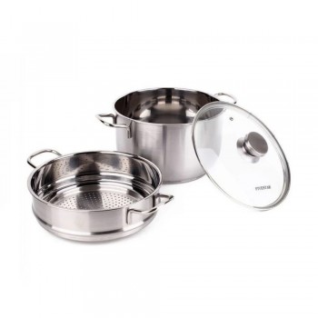 - Bộ nồi bao gồm: 1 nồi đường kính 28cm, 1 xửng hấp đường kính 28cm, 1 nắp thủy tinh đường kính 28cm.